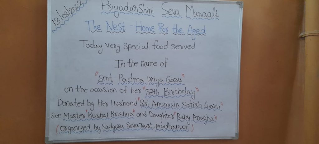 The donation was given by her husband Sri. Anumula Satish Garu and overall organized by our organisation (Sadguru Seva Trust).